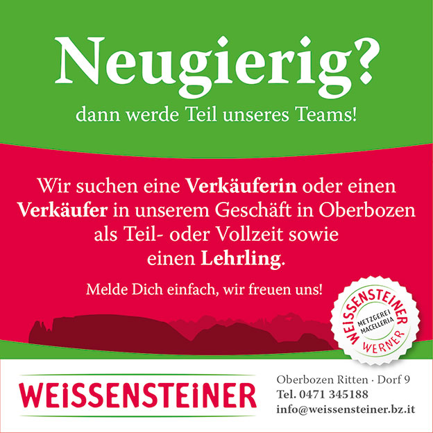 Das Rittnerbahn-Komitee sucht für die Aufarbeitung seines Archivs Studenten mit einschlägiger Erfahrung. Tel. 0471 1884955
